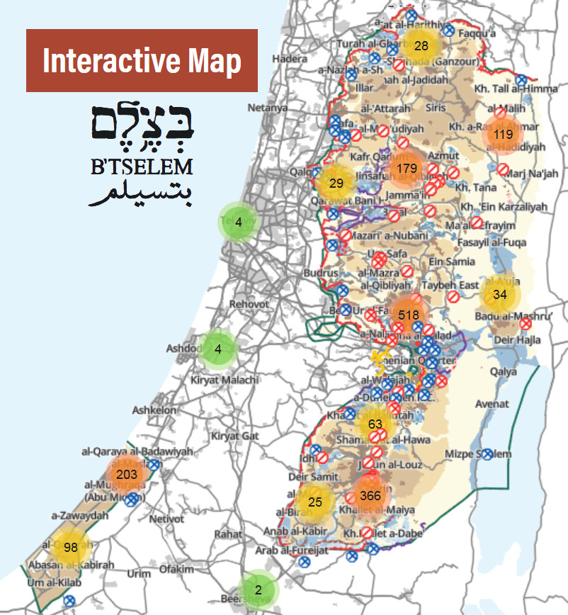 Carte de B’Tselem sur la Palestine occupée