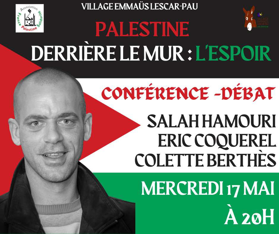 Avec l’Association France Palestine Solidarité. Conférence-débat Le mercredi 17 mai à 20h Salah Hamouri -