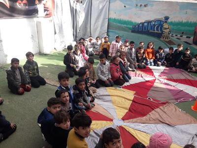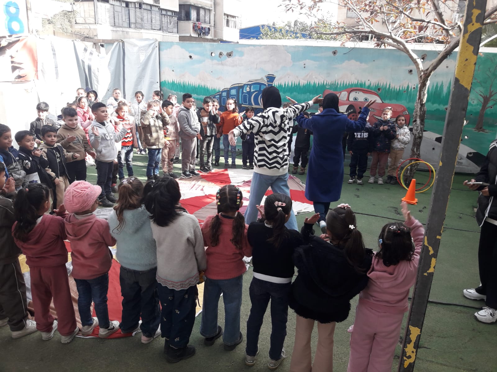 Ces jeunes ont organisé une activité d’animation fin janvier 2026 dans un centre éducatif de Gaza