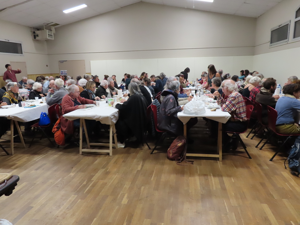 Samedi 25 octobre à la salle des fêtes, prêtée gracieusement par la mairie de La Bastide de Sérou, environ 120 personnes se sont retrouvées comme chaque année en soutien à la lutte des Palestiniens contre la colonisation israélienne. Ces 2 dernières années ont été rendues plus terribles encore après les bombardements ininterrompus à Gaza : plus de 70 000 mort.es et de 170 000 blessé.es, des milliers de disparu.es, surtout des femmes et des enfants comme si l’objectif final était d’éradiquer les Palestiniens de Gaza !