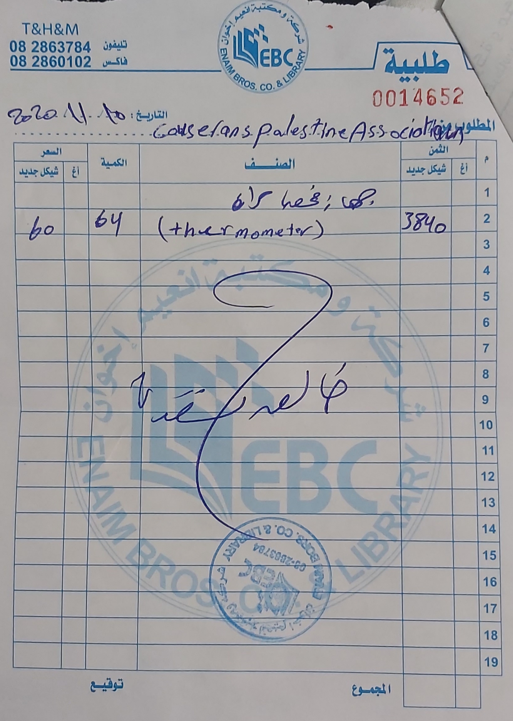 "Nous avons un besoin urgent qui consiste en achat des thermomètres qui sera fourni aux écoles, car dans un plan de reprendre les études pour les élèves dans les deux semaine qui viennent, la direction de l’école doit fonctionner selon le protocoles imposés par le ministère de la santé comme condition pour retour aux écoles Les élèves avant de passer en classe doivent mesurer leur température comme étape de précaution et de protection du Covid-19"